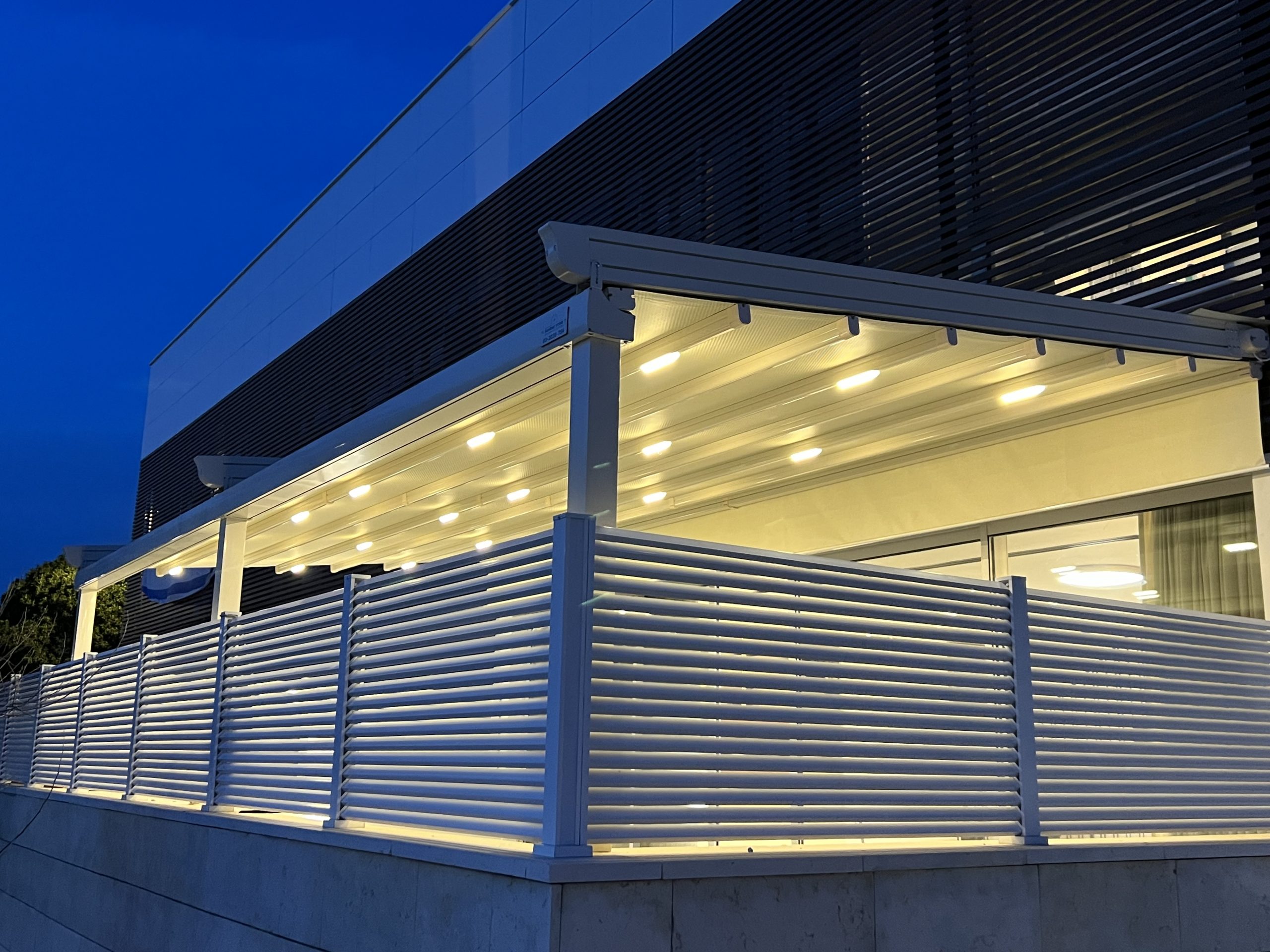 פרגולות PVC חשמליות הן משלבות נוחות, אלגנטיות ופונקציונליות ללא פשרות, מאפשרות לכם ליהנות מהחצר שלכם בכל מזג אוויר. פתיחה וסגירה קלה באמצעות שלט רחוק, עיצוב מודרני ומרשים לכל סגנון אדריכלי, הגנה מפני גשם, שמש ורוח, תאורה מובנית ליצירת אווירה נעימה – כל מה שצריך כדי ליצור פינת חמד מושלמת בביתכם.